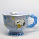 Adorable Snoopy ceramic mug – perfect for Peanuts fans and cozy drink moments! Featuring a blue handle with paw prints and Snoopy hugging Woodstock for a warm, cheerful vibe. Its unique shape makes it both fun and practical. Great for coffee, tea, or hot chocolate