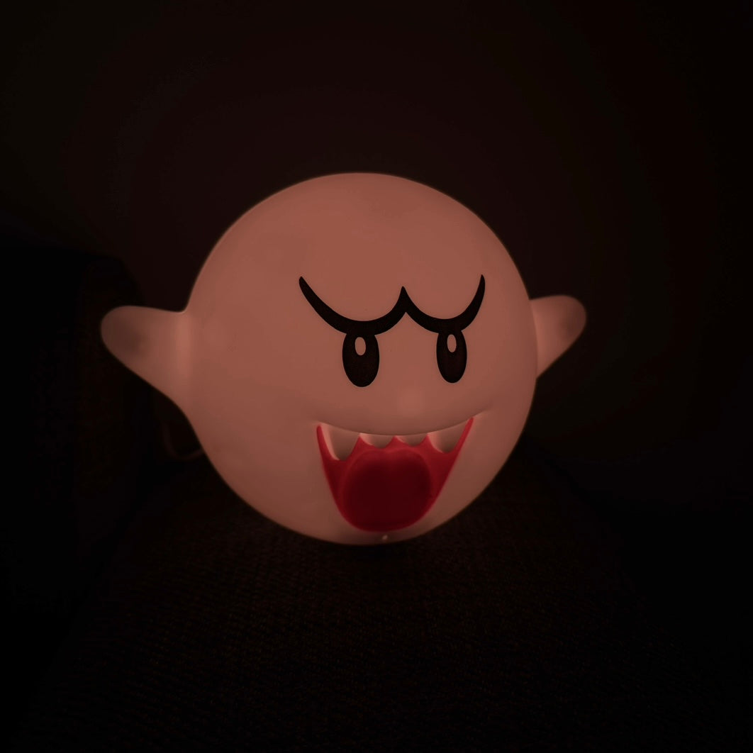 أضف لمسة من المرح إلى غرفتك مع مصباح الشبح اللطيف المستوحى من الألعاب الكلاسيكية! تصميم كروي مضحك مع فم مفتوح وتعبير ظريف يجعله قطعة ديكور مثالية لغرفة النوم أو المكتب. يصدر ضوءًا ناعمًا ومريحًا يناسب الأجواء الهادئة ليلاً.