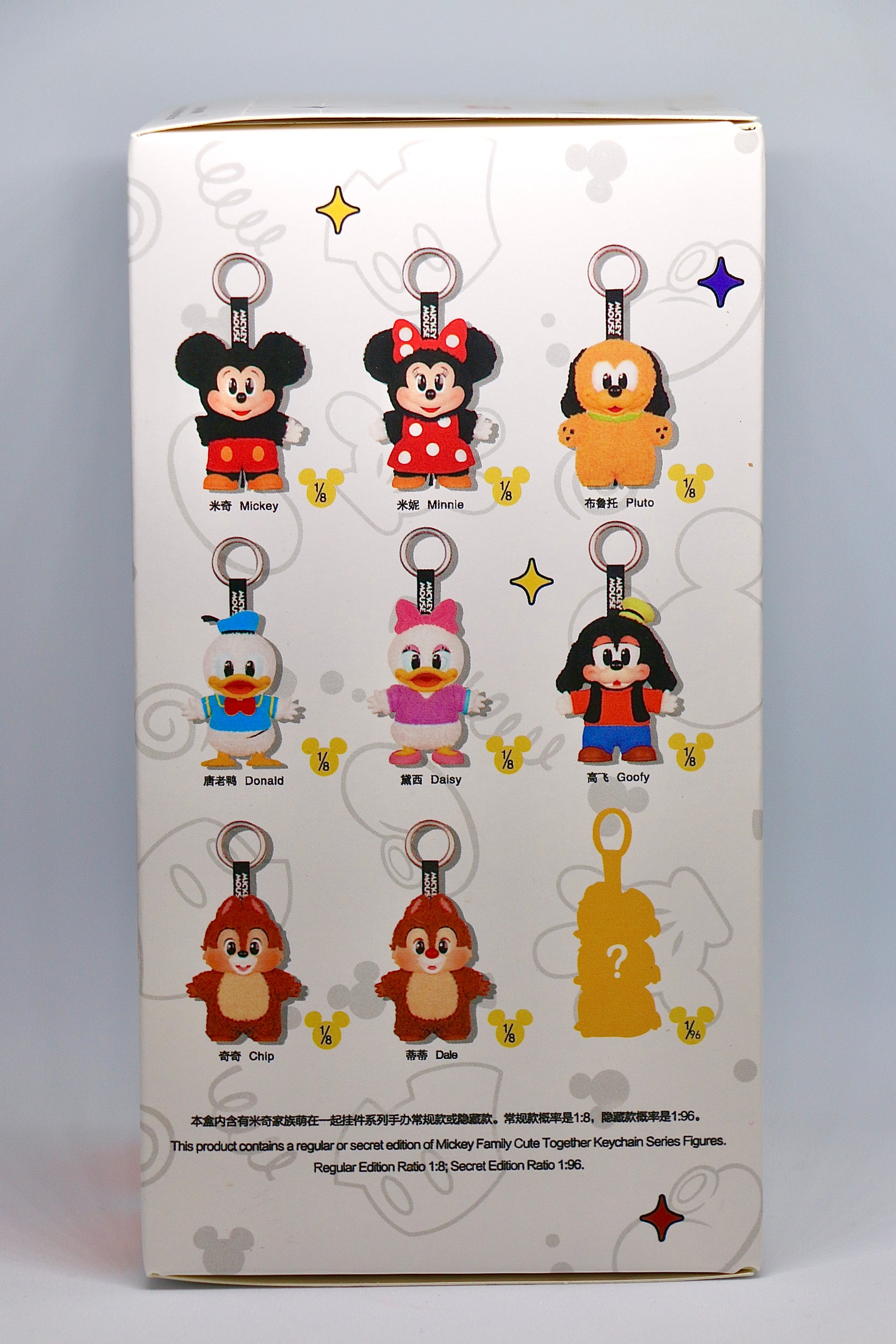 تتضمن هذه المجموعة الرائعة 8 شخصيات محبوبة: ميكي، ميني، دونالد، ديزي، تشيب، ديل، بلوتو، وغوفي.