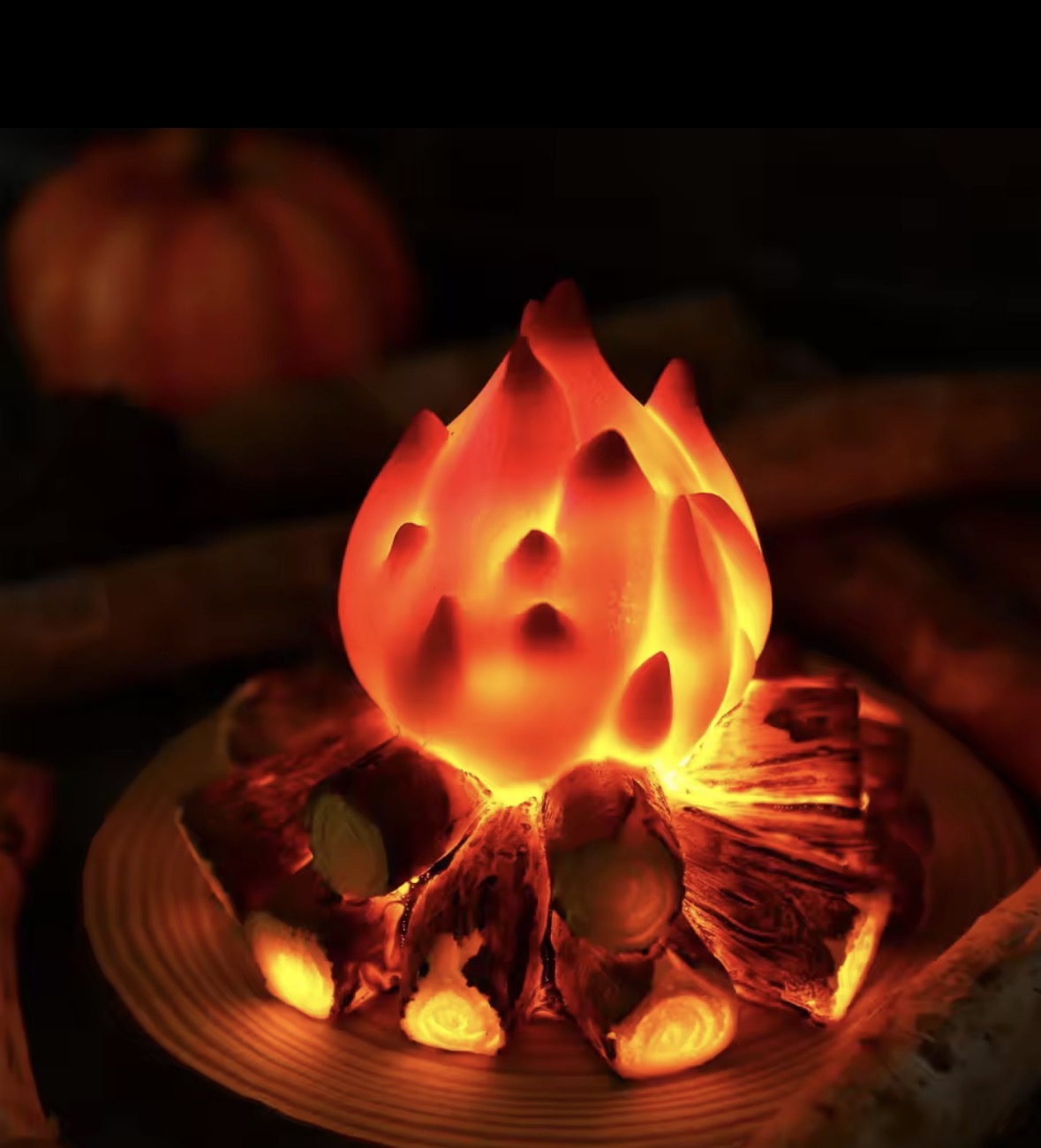 تصميم يحاكي شكل نار المخيم الحقيقية، ينبض بالحياة بإضاءة ناعمة ودافئة تضيف جوًا من الهدوء والاسترخاء.