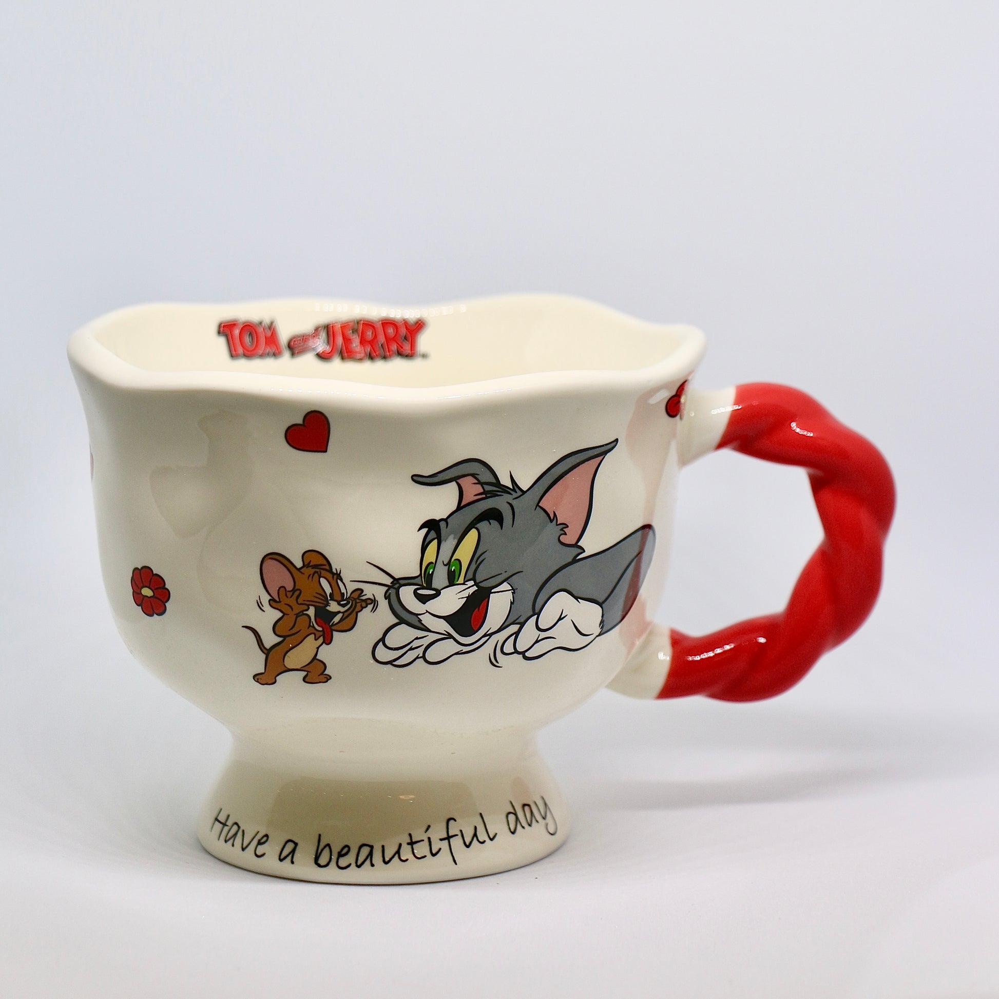 كوب سيراميك بتصميم توم وجيري الكلاسيكي، مثالي لعشاق الكرتون واللحظات الممتعة. يتميز بمقبض أحمر لافت للنظر وشكل مميز يضيف لمسة من المرح لمشروبك المفضل. مكتوب عليه عبارة “Have a beautiful day” ليمنحك بداية يوم إيجابية. مناسب للقهوة، الشاي، أو أي مشروب ساخن